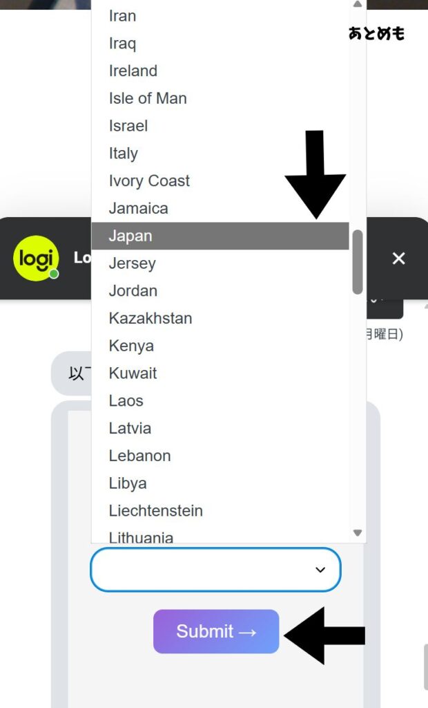 次に自分の国を選択します。