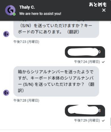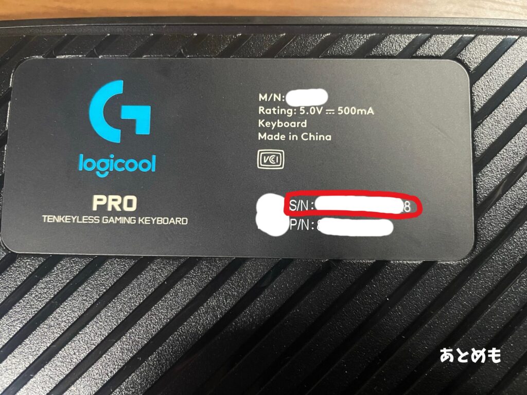 挨拶をし、キーボードの状態を担当者に話したら、シリアル番号(S/N)の出番です
