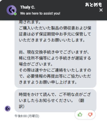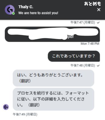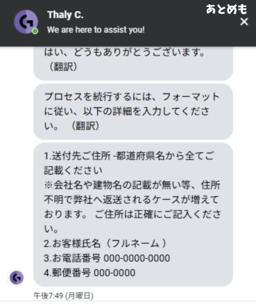 入力したものが確認されたら、発送手続きが終わりサポートが終了します。
