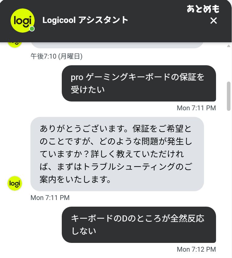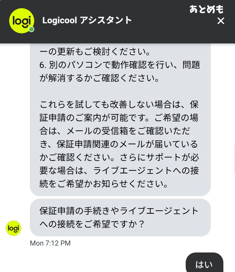この記事ではロジクール製品の保証申請の手順をチャットで実際にやり取りした画像もつけて解説します