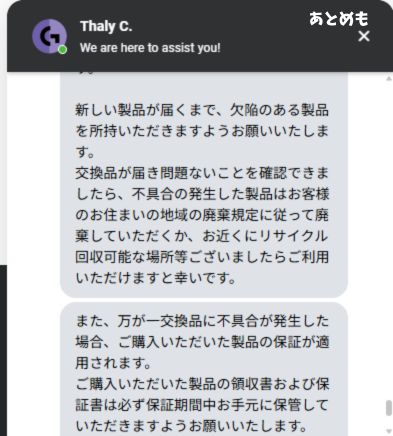 わざわざこちらが故障品を発送する手間がなくなるのでこの対応はさすが大手といったところだと思います